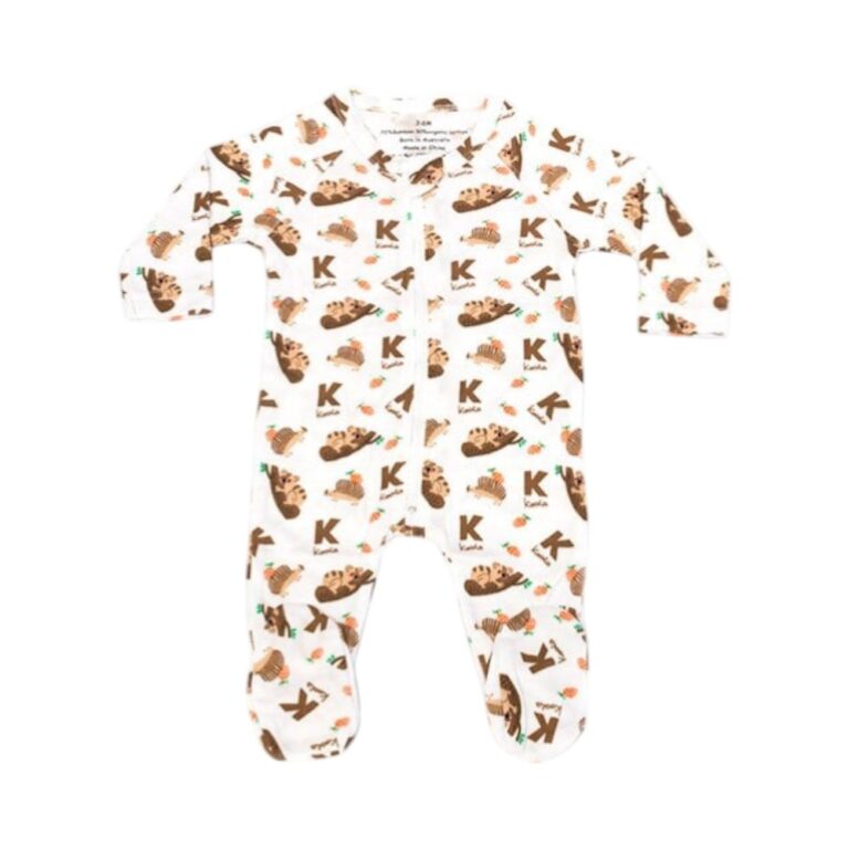 Keep tiny toes snug with the convenient footed design — no need for separate socks that slip off. Perfect for sleep, lounging, or layering under outerwear. Features include a cute koala print, a zip front opening for easy dressing, and a protective zip cover to safeguard delicate skin.